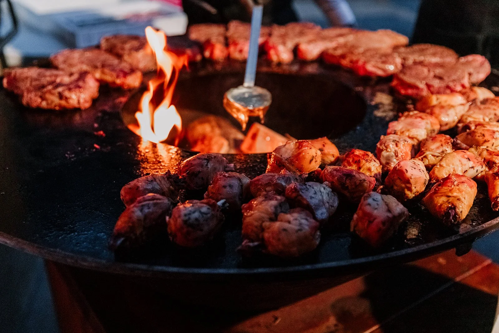 Pour le dîner, les invités ont eu le choix entre plusieurs viandes cuites au feu et des accompagnements, et chacun composait son assiette comme il le voulait.