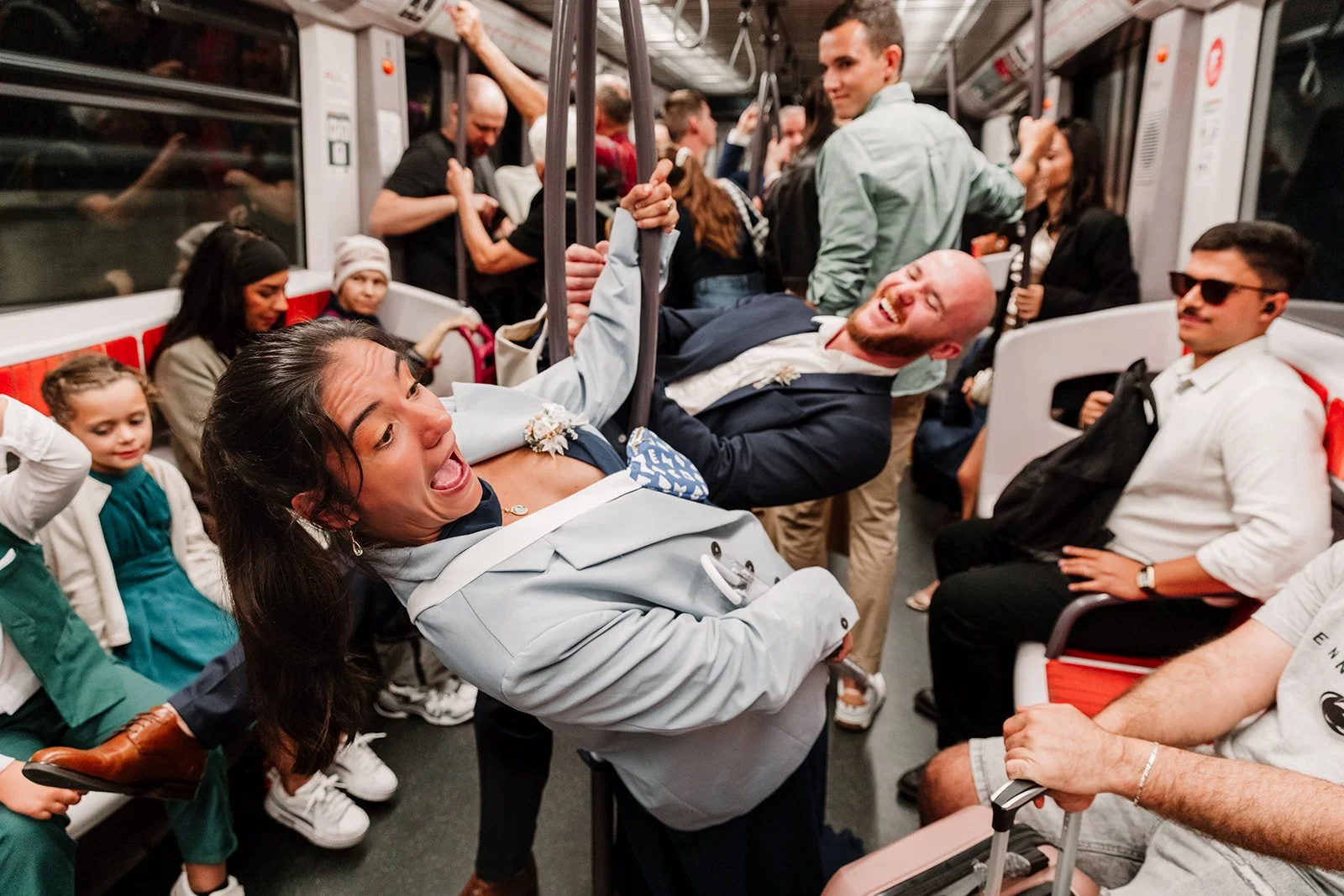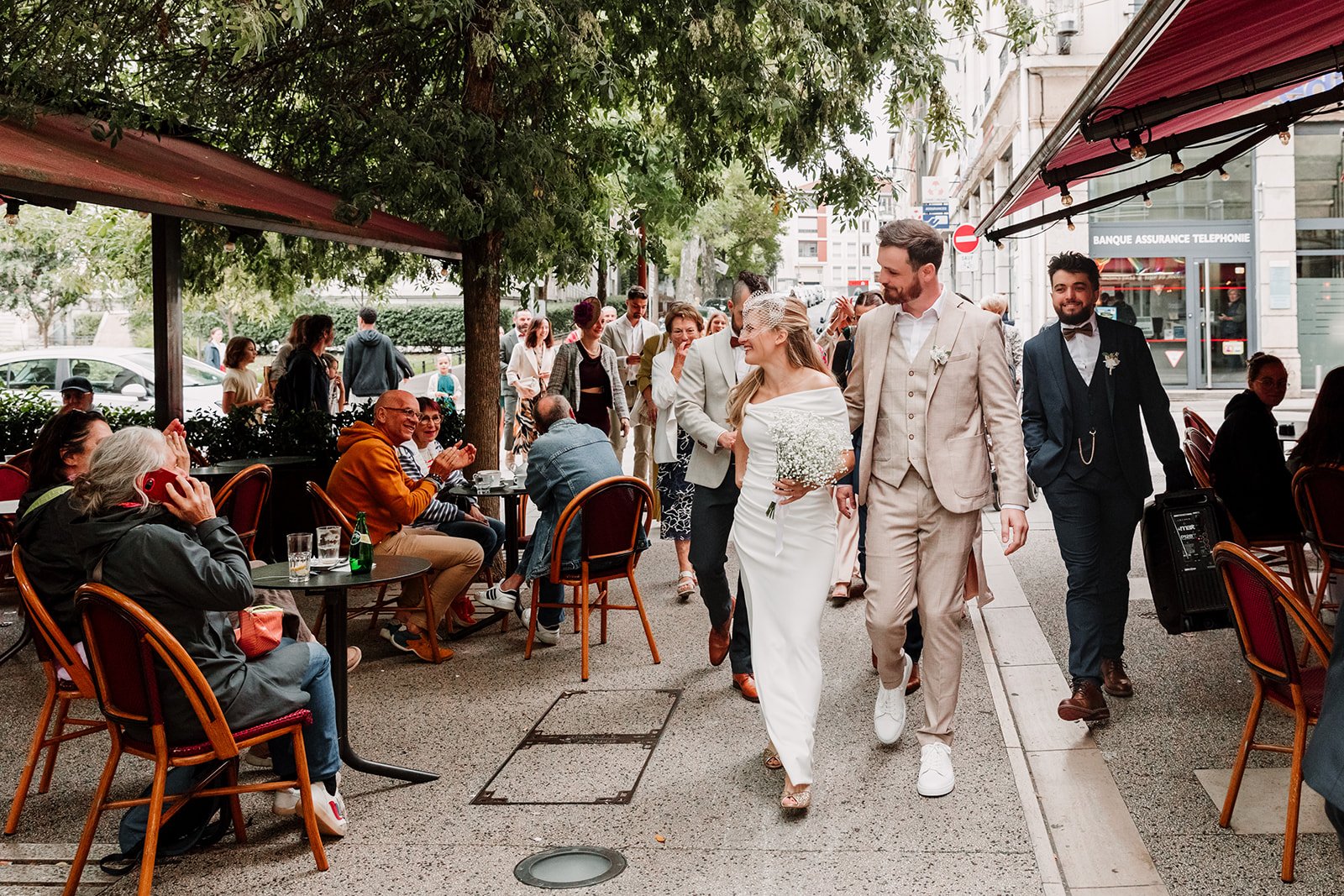 Les témoins avaient apporté un gros ampli, alors dans la rame il y a eu de la musique, des regards amusés, des gens qui applaudissaient. On a fait quelques photos pendant le trajet, puis on a pris le tram pour rejoindre Perrache.