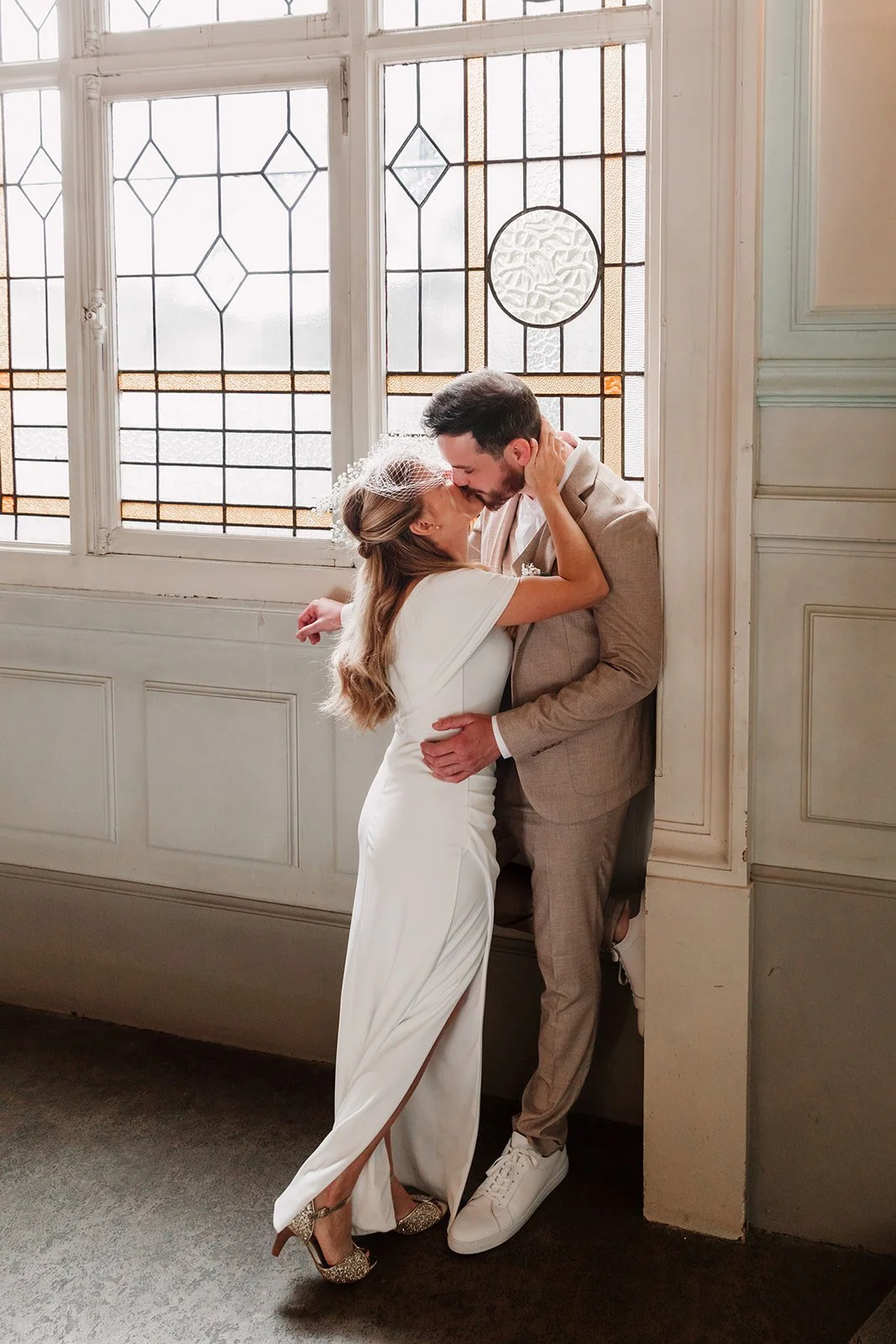 L’hôtel Ibis situé tout près de la Brasserie Georges avait un vrai intérêt dans cette journée : il permettait aux mariés de se préparer juste à côté des invités sans ajouter de trajet inutile, tout en offrant un cadre bien plus photogénique qu’on ne pourrait le penser, avec son bel escalier et ses vitraux d’époque.